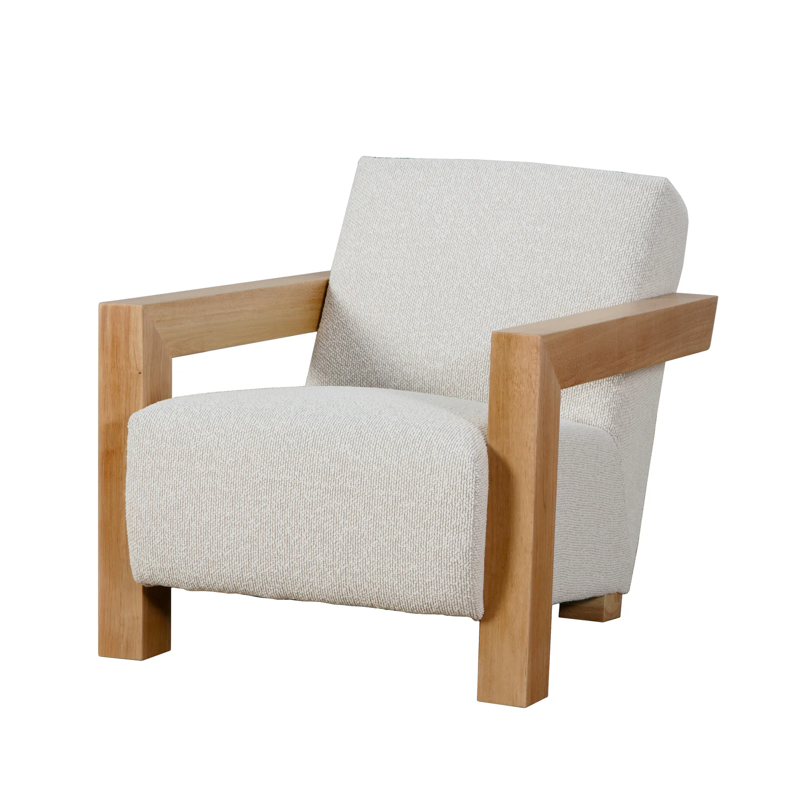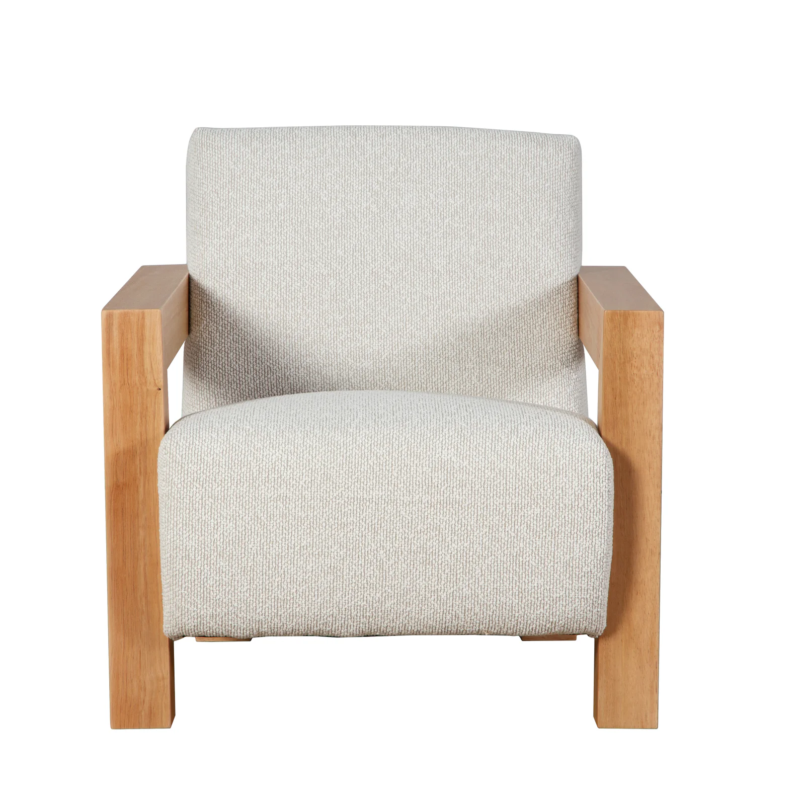 The Cream fabric gives the chair a soft, cosy look, while the natural timber arms add warmth and structure. Its generous seat and supportive back make it ideal for a living room, bedroom, reading nook or occasional seating area. Style it as a single feature chair, or place two together to create a comfortable conversation setting.