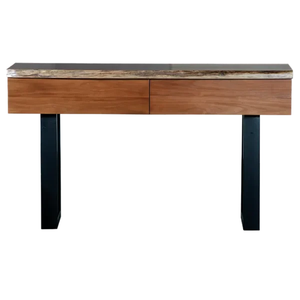 Featuring a live edge design, the Fortitude Hall Table embraces the organic contours of the original tree, complemented by a sleek black recess cavity that dramatically enhances the live edge’s visual impact.