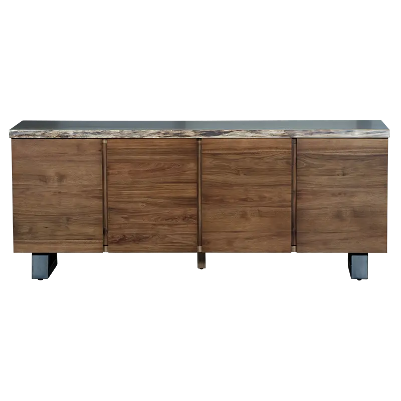 Delight in the mesmerizing blend of light and dark tones, complemented by distinctive live edge features. Each buffet exudes rustic elegance, enhanced by the sleek black recess cavity for a natural aesthetic.
