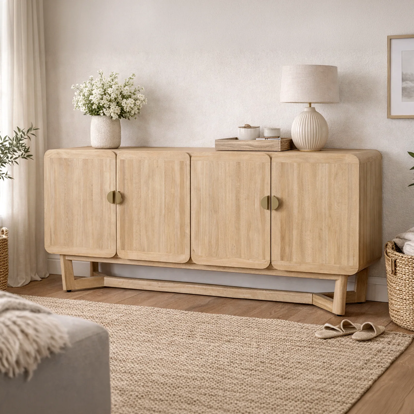The Norway Buffet 4 Door is a statement storage piece designed for spacious interiors that need both style and practicality. Crafted from premium rubberwood with a natural finish, it showcases the collection’s signature Scandinavian-inspired look with clean lines, minimalist details and timeless natural warmth. Its larger size makes it ideal for storing dining essentials, tableware and household items while creating a calm, elegant focal point in the room
