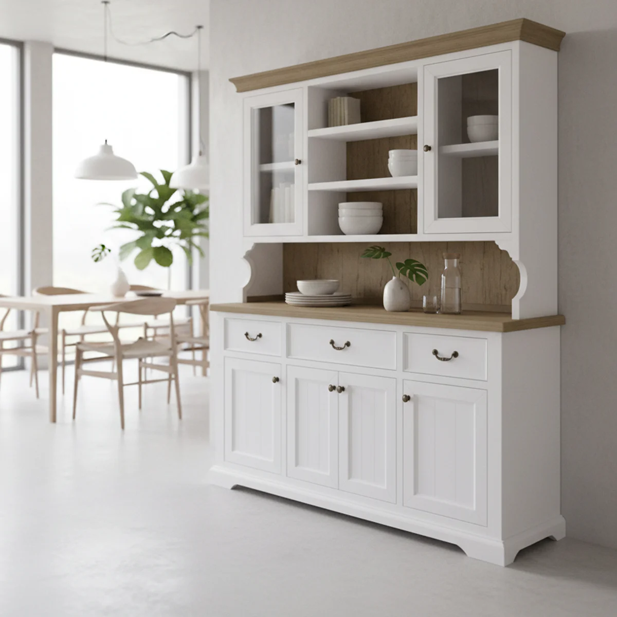 The Oregon Two Tone Furniture is designed to suit any household, seamlessly blending with various interior themes. Its classic white color brings a sense of freshness and brightness to your living space, while the warm timber finishes add a touch of natural warmth and sophistication. This combination creates a harmonious balance, making the Oregon collection a timeless addition to any room.