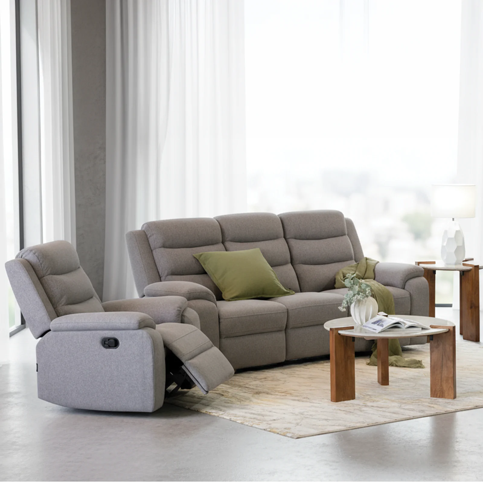 Perfect for couples or smaller living rooms, the Sora 2 Seater Recliner combines space efficiency with unbeatable comfort. Both seats feature a manual reclining mechanism, allowing you and a partner to relax in personalised comfort. Upholstered in a modern fabric, it suits a wide range of interiors while offering the supportive feel of pocket springs and layered foam.