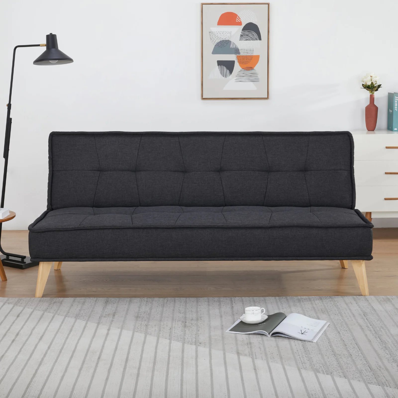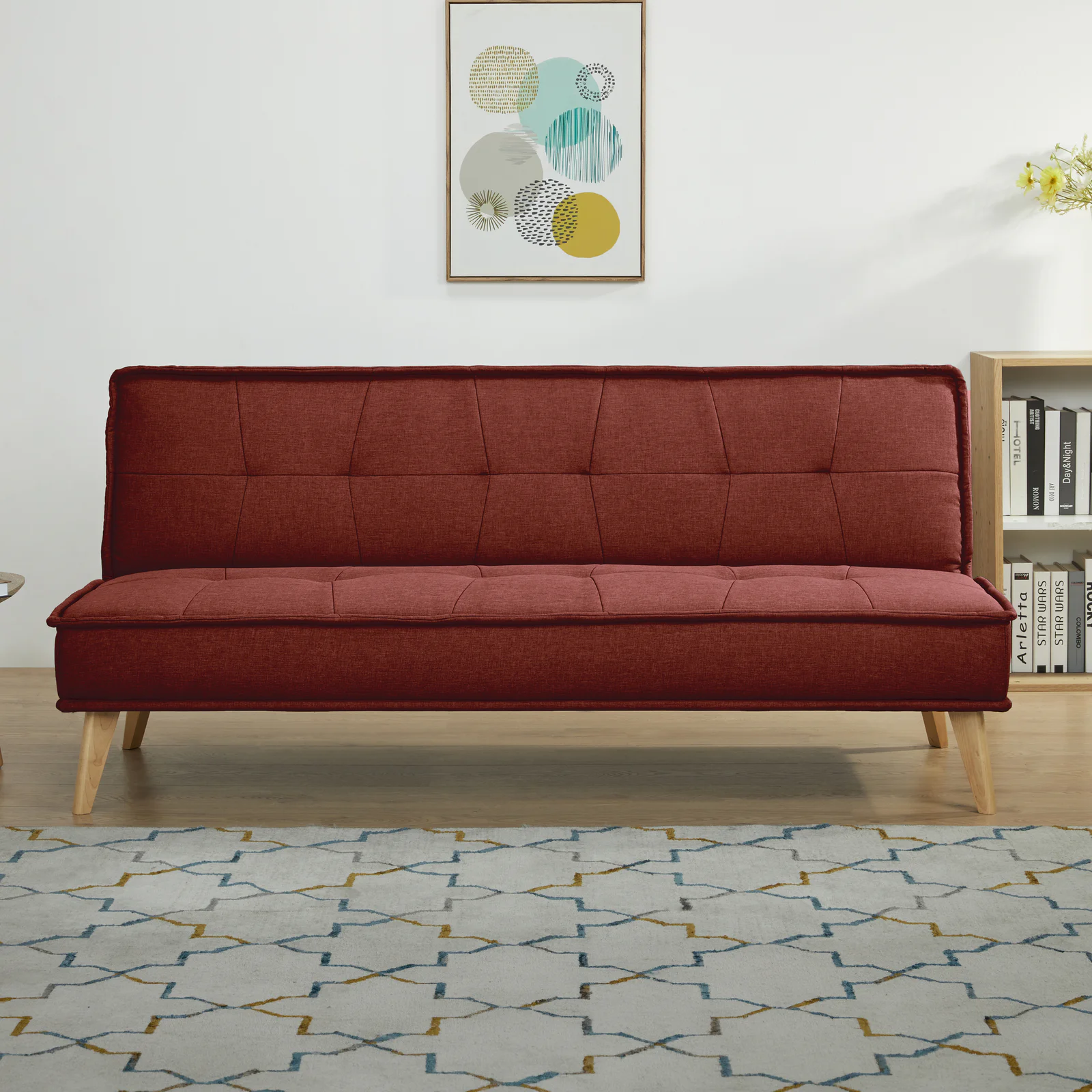 By day, it works as a sleek sofa with a clean, low-profile design, button-tufted cushioning and slim timber-look legs. When extra sleeping space is needed, the click clack mechanism allows it to convert into a flat bed, making it ideal for overnight guests, apartments, spare rooms or rumpus areas.