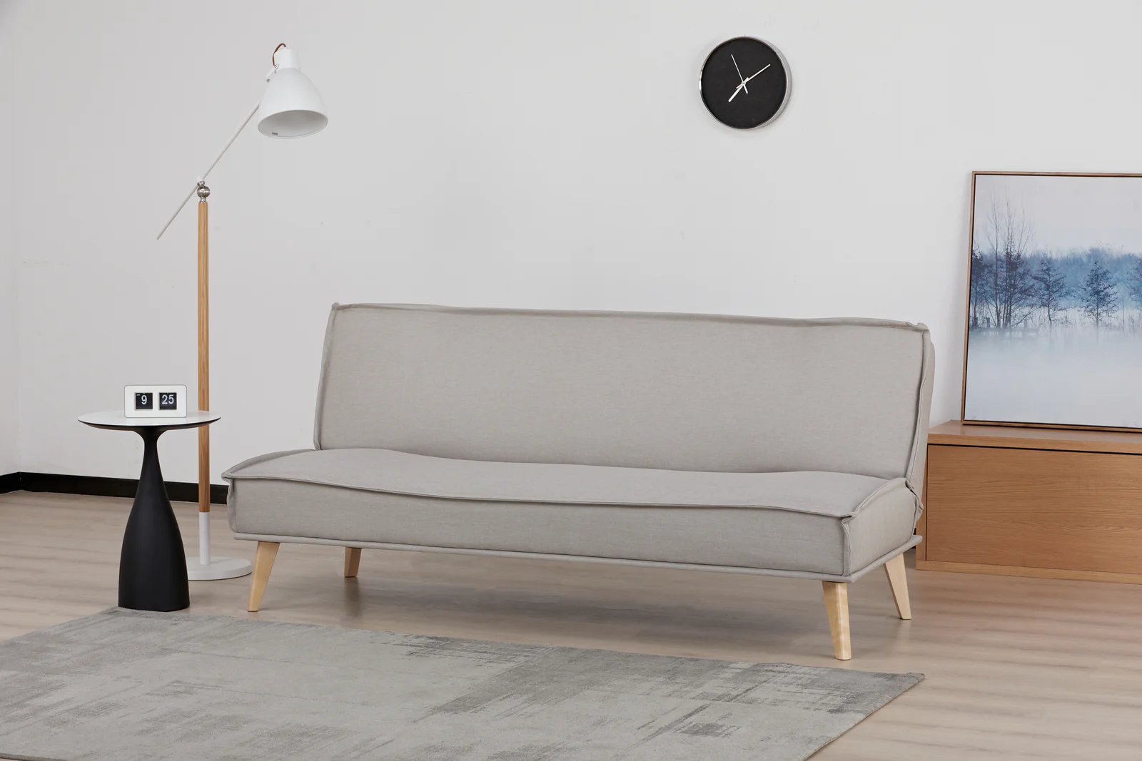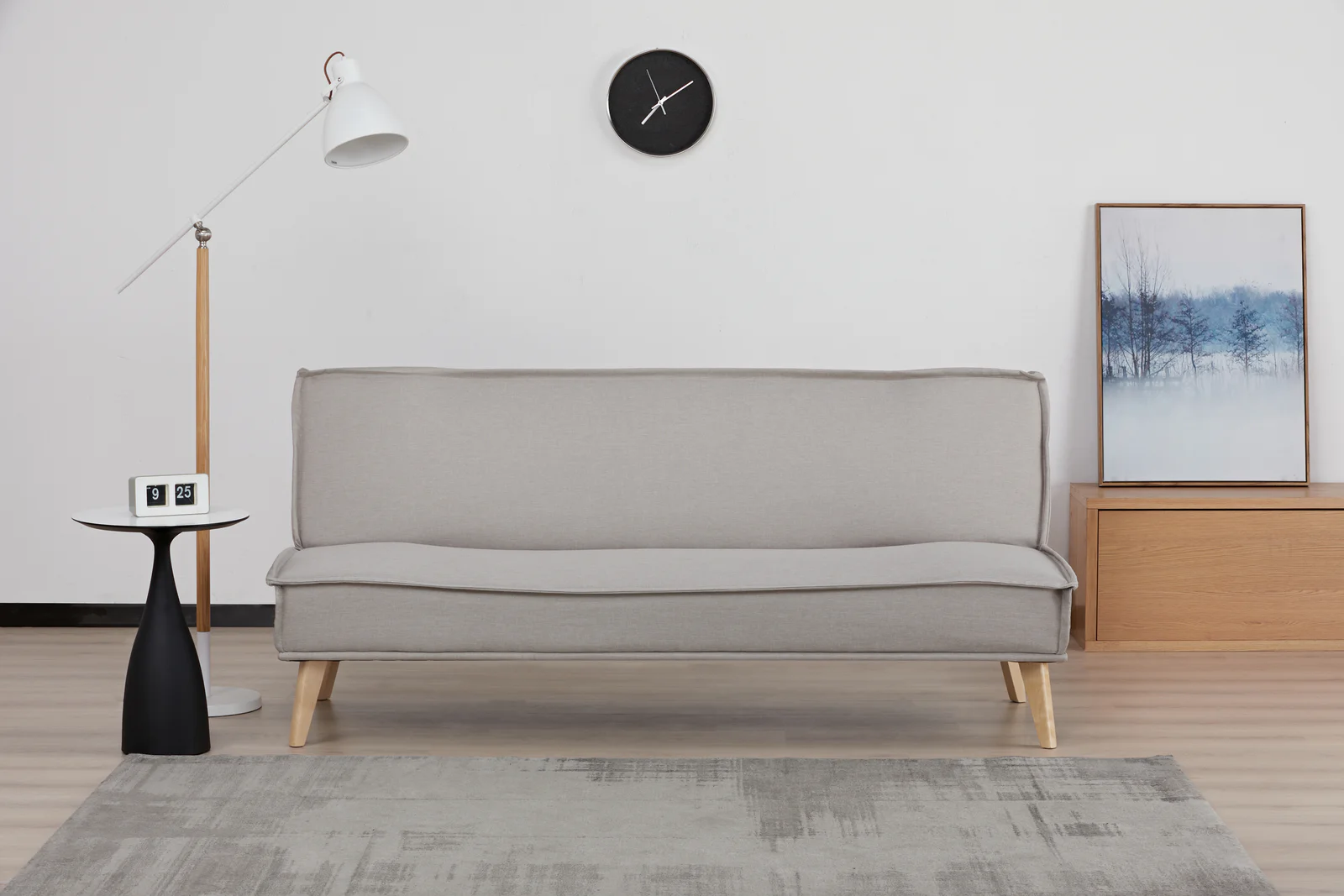 Simple, stylish and practical, the Taurus Click Clack Sofa Bed is designed for modern homes that need flexible seating and occasional sleeping space. Its clean armless profile, soft beige fabric and light timber-look legs give it a fresh contemporary feel that is easy to style with neutral, coastal, Scandinavian and modern interiors.